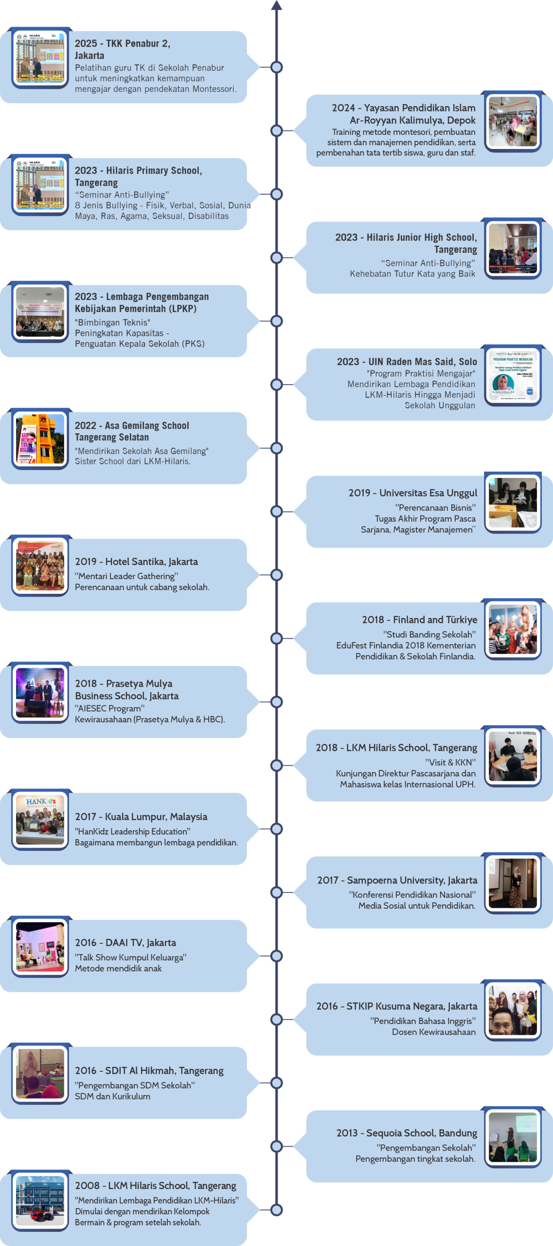 Edu. Consultant, plays a role in optimizing the implementation of SBM (School Based Management) at Foundations/Educational Institutions, in planning, training & mentoring to apply SBM components in accordance with the mature Education and Culture Department at Educational Institutions.